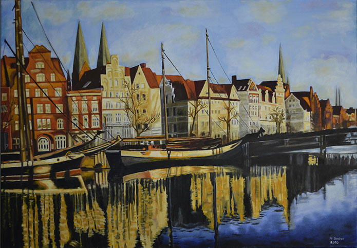 Alter Hafen Lübeck bei Sonnenuntergang
